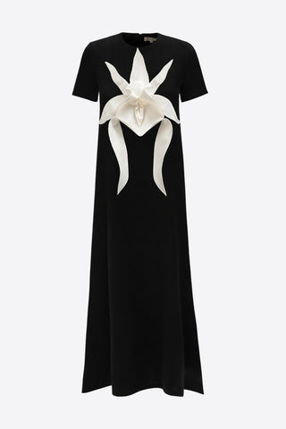 Designer Fitted Sleeveless Top, Floral Accent - Black