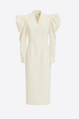 Evening Midi Straight Dress With Sculpted Shoulders – Taupe
