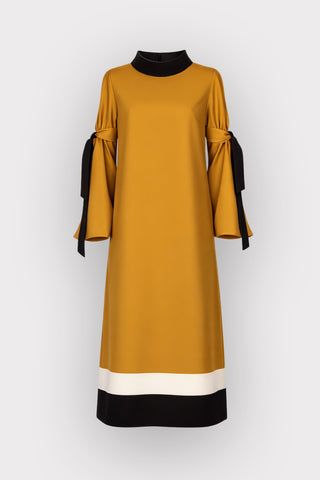 Art-Inspired Semi-Fitted Three-Quarter Sleeves Dress – Pale Pink