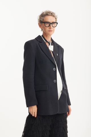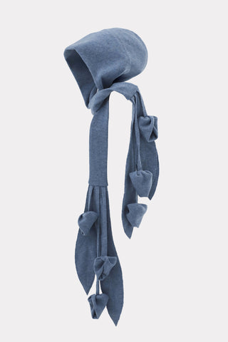 Self-Tie Double Knit Wool Hooded Scarf - Dusty Navy