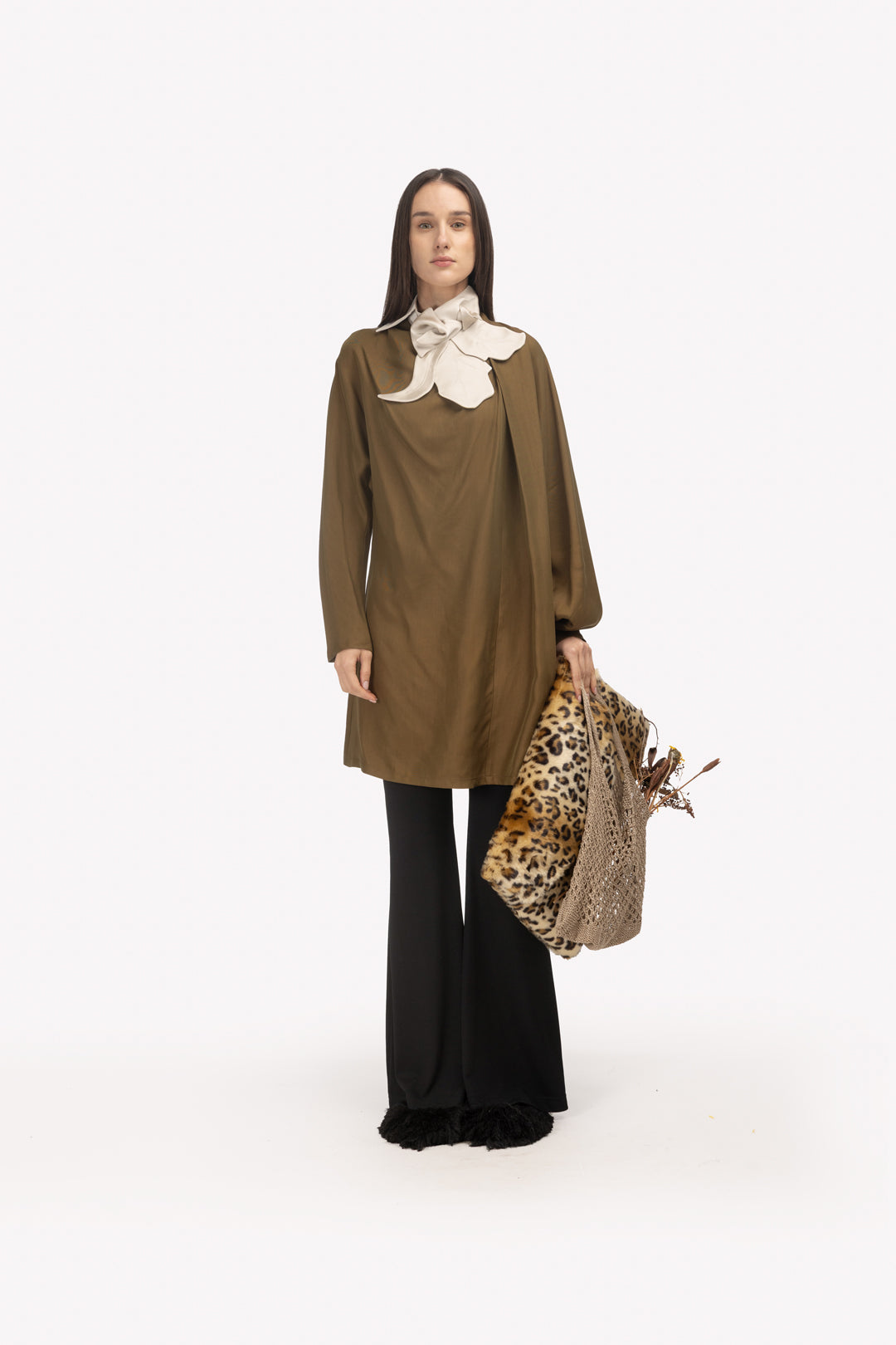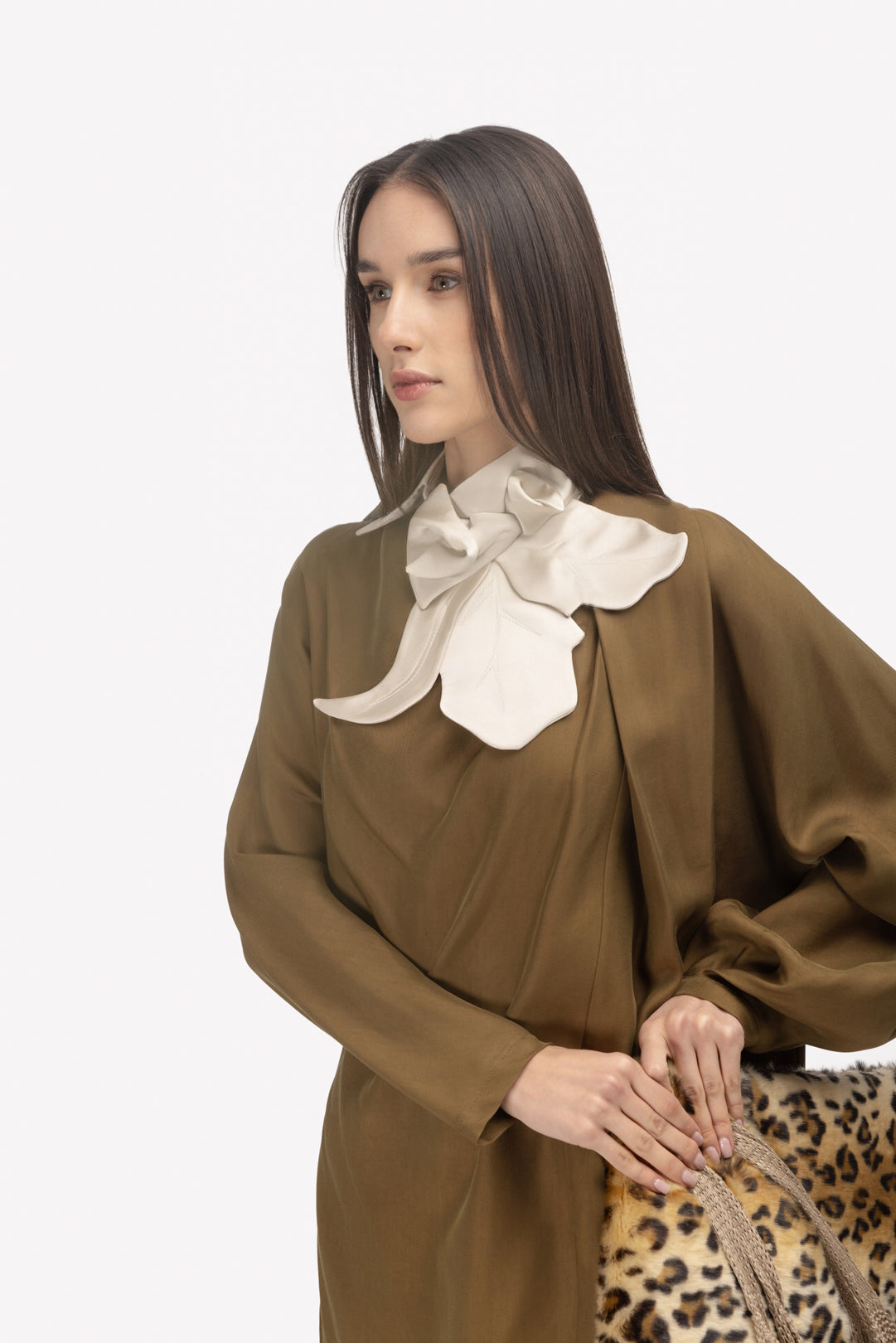 Bold and romantic, this crimson red satin collar redefines statement dressing. Its floral-inspired folds bloom softly around the neck, adding drama and dimension to minimal silhouettes. Designed as a detachable accent, it transforms daywear or evening looks with sculptural ease and color intensity — a signature Julia Allert gesture of confident femininity.