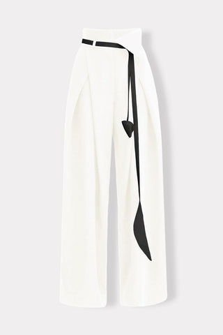 Contemporary Striped A-Line Skirt, Floral Detail– Black-White