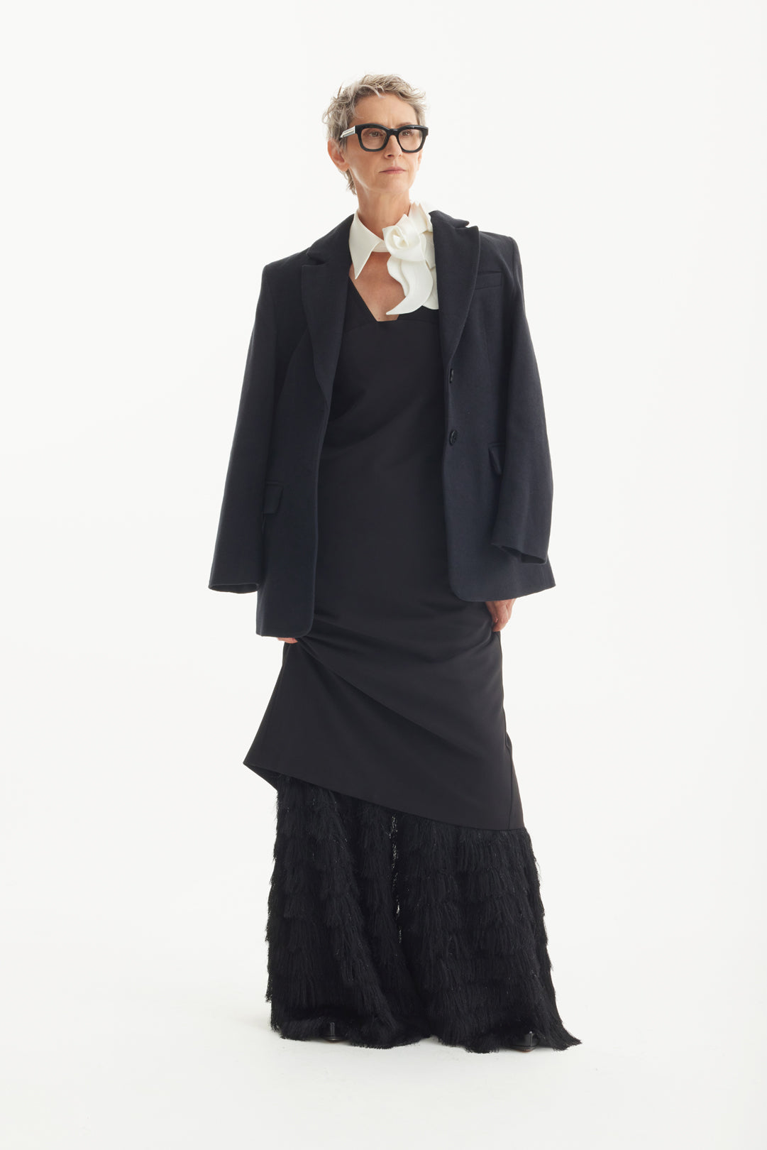 Discover the perfect blend of classic tailoring and contemporary detail with this black sheath dress by Julia Allert. Designed for the modern professional woman, it features a crisp white collar and sculptural floral applique for a refined, fashion-forward touch. Crafted from premium viscose blend, the dress offers a structured, flattering fit with practical hidden pockets and a smooth finish. Ideal for business meetings, formal occasions, or elegant evening events, this black and white midi dress combines timeless style with modern sophistication.