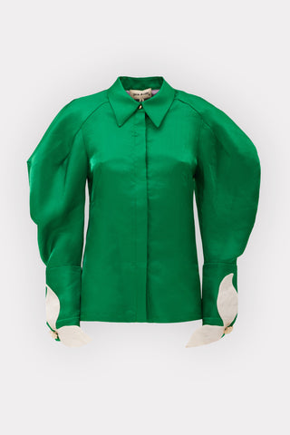 Romantic Silk Organza Blouse With Balloon Sleeves – Bright Green