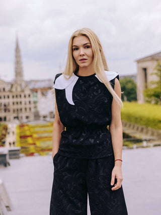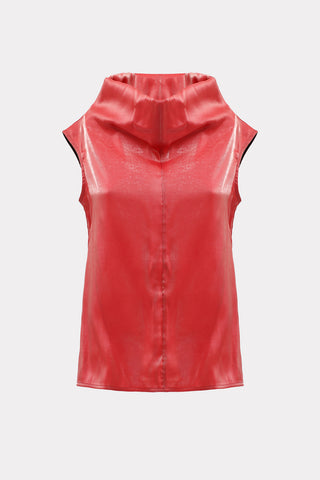 High-Neck Button-Up Loose Fit Blouse Faux Suede Pale Yellow
