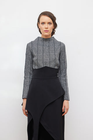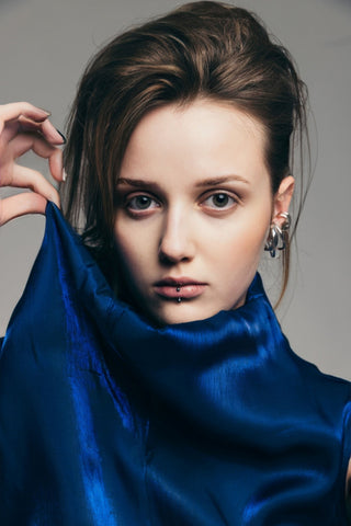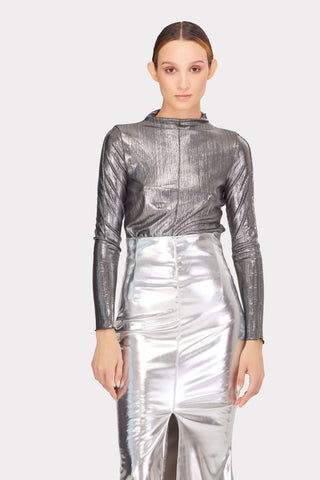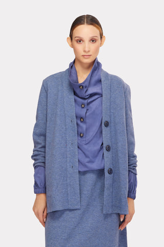 High-Neck Button-Up Loose Fit Blouse Faux Suede Pale Blue