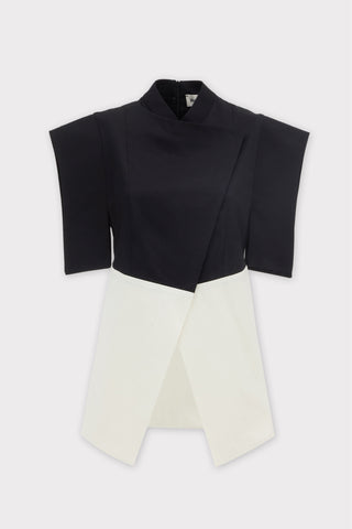 Artistic Asymmetric Textured Viscose Blouse - Navy