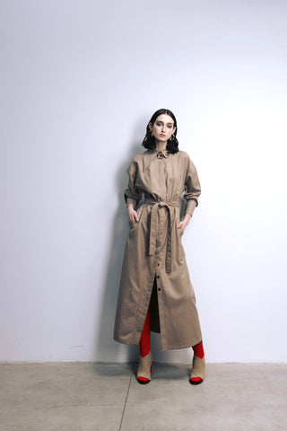 Elegant Dress Shirt Ankle Length Wool-Blend Beige