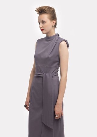 Designer Long Dress With Mock Neck Solid Pale Violet