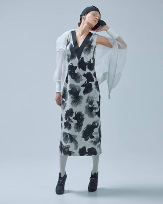 Exclusive Fish Print Sleeveless Crepe Dress White