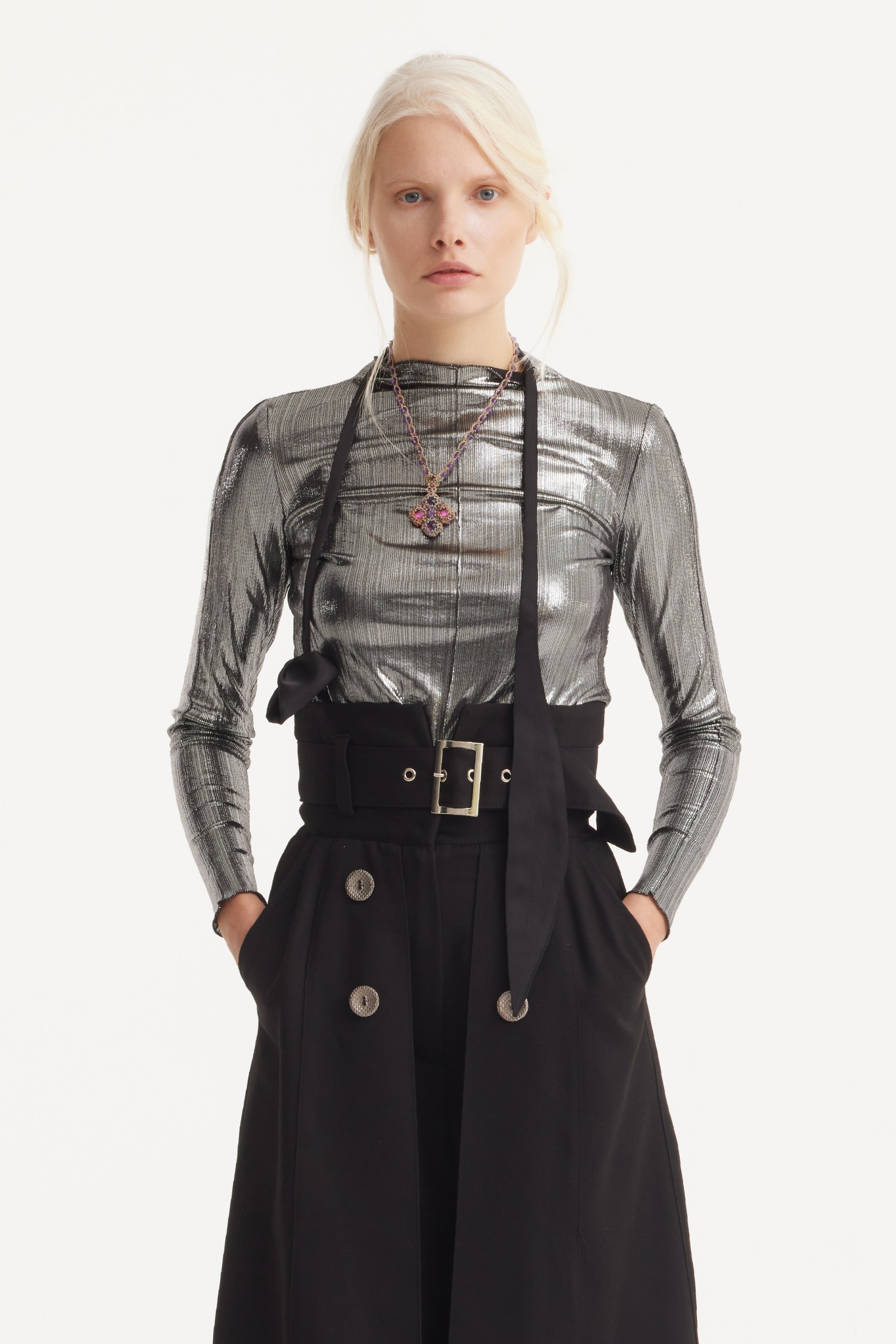 The unique effect of foiling on the fabric gives the blouse an exquisite and glamorous look. It creates a unique shine, making you the star of any event.