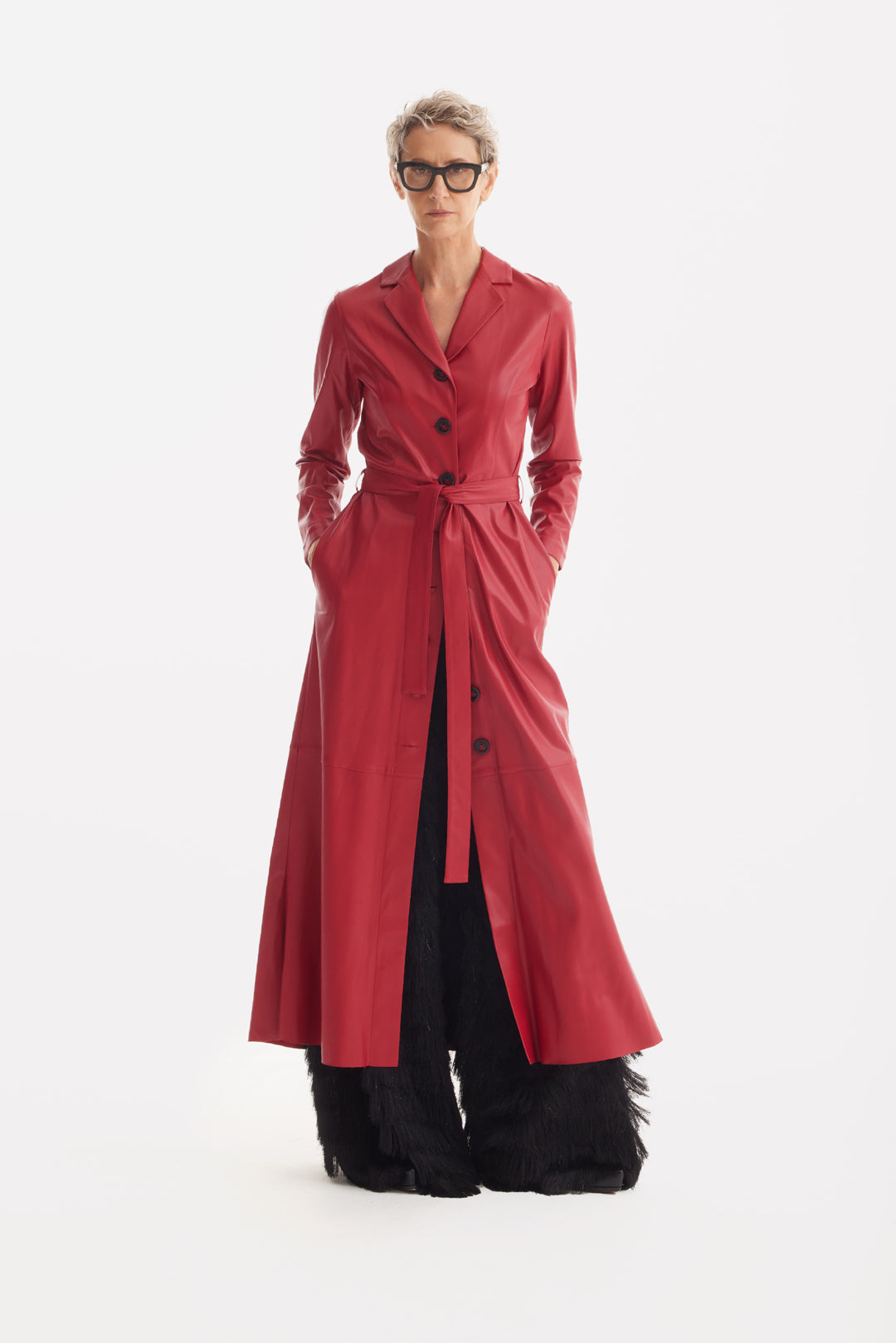 Discover elegance and sustainability combined in our latest fashion innovation: the Red Long Button-Up Eco-Leather Trench. This exquisite piece not only elevates your wardrobe but also supports environmentally conscious living. Crafted from premium eco-leather, our trench coat offers a luxurious feel without compromising the planet's wellbeing. Perfect for those who value style and sustainability in equal measure.