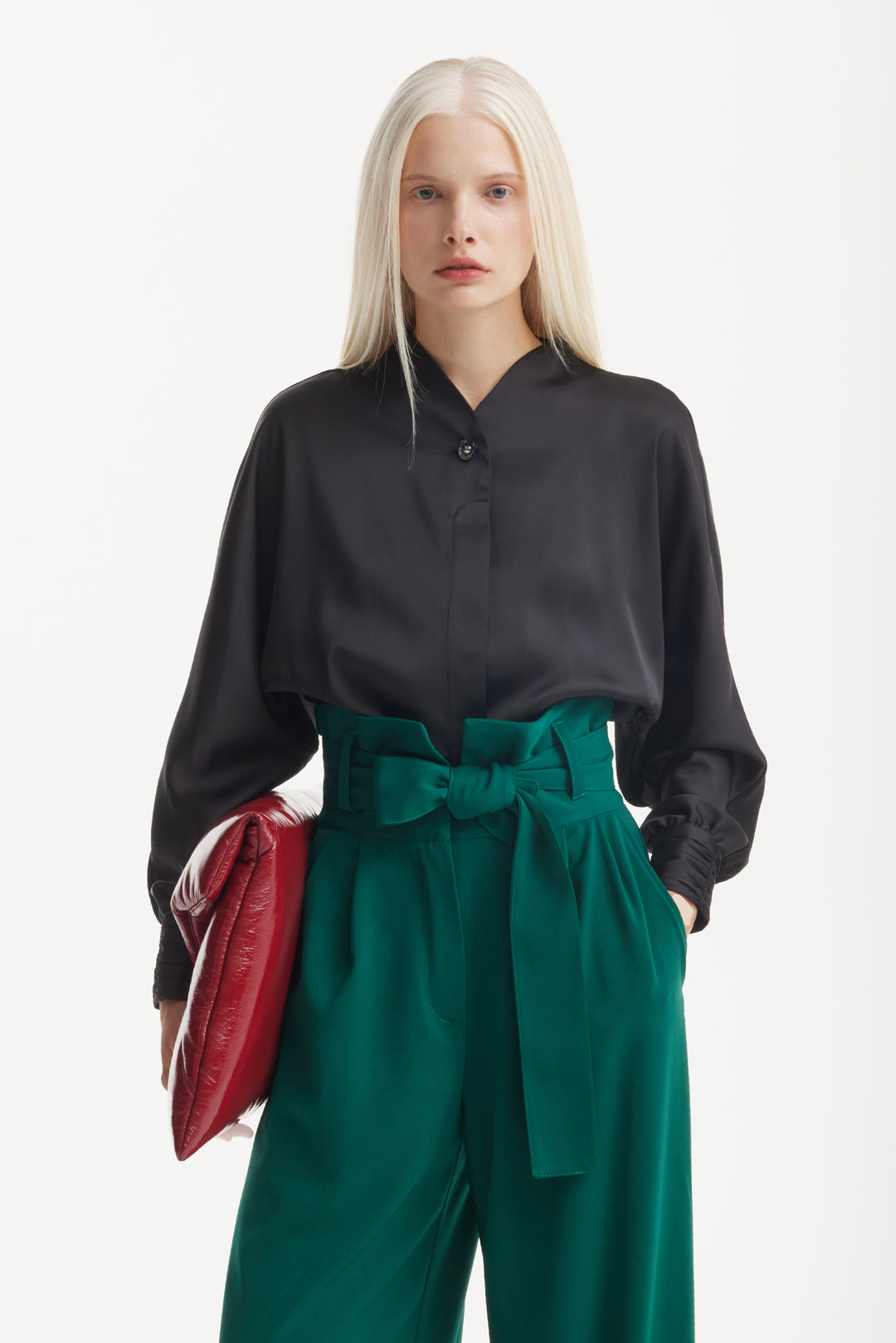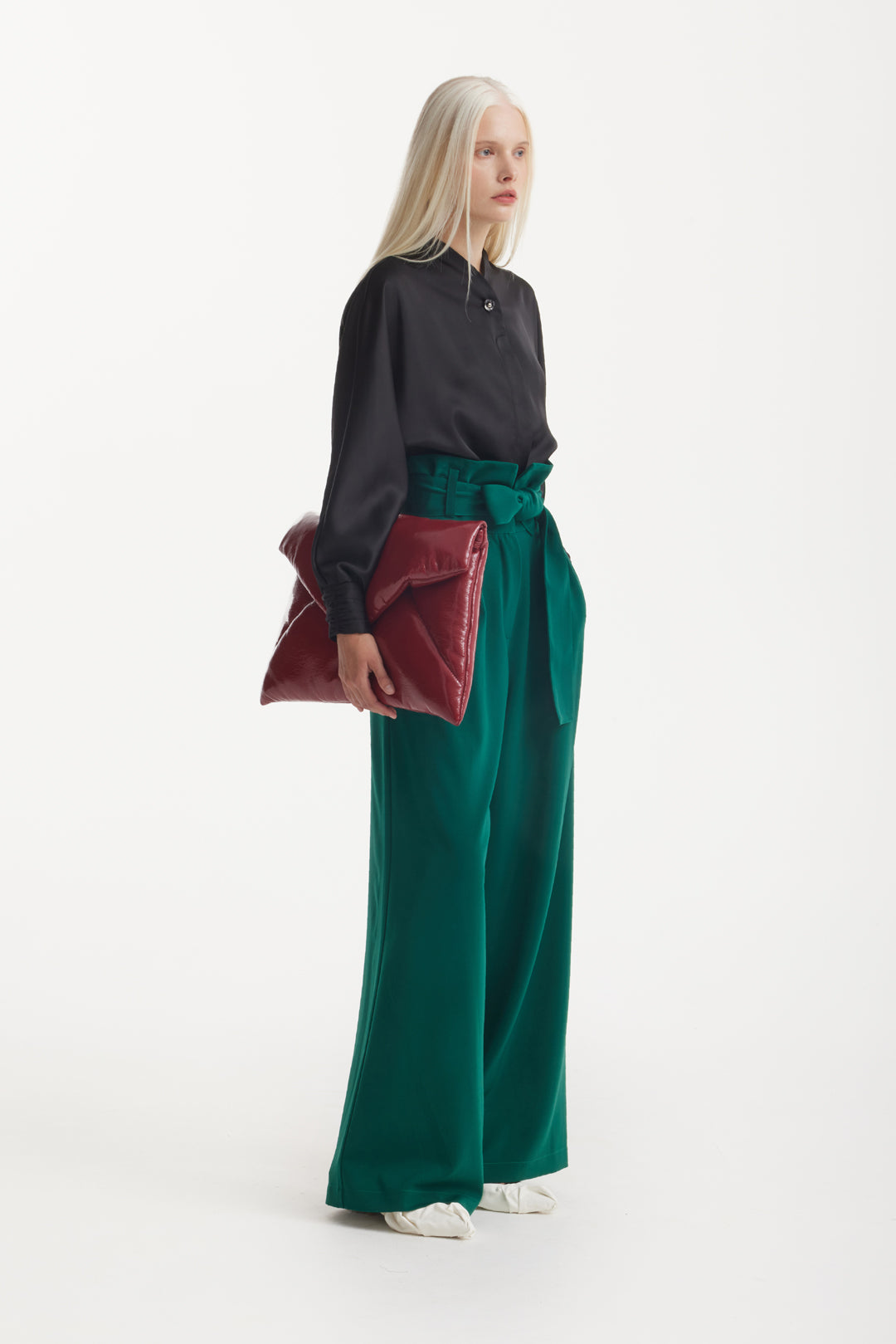 Expertly crafted pleats, a corset-style waistband, and a matching belt sculpt and define the waist, delivering a tailored yet effortless fit. The premium fabric ensures a graceful drape, adding fluidity and elegance to every movement. Perfect for both formal and casual settings, these trousers are a versatile addition to your wardrobe, blending timeless sophistication with modern style.