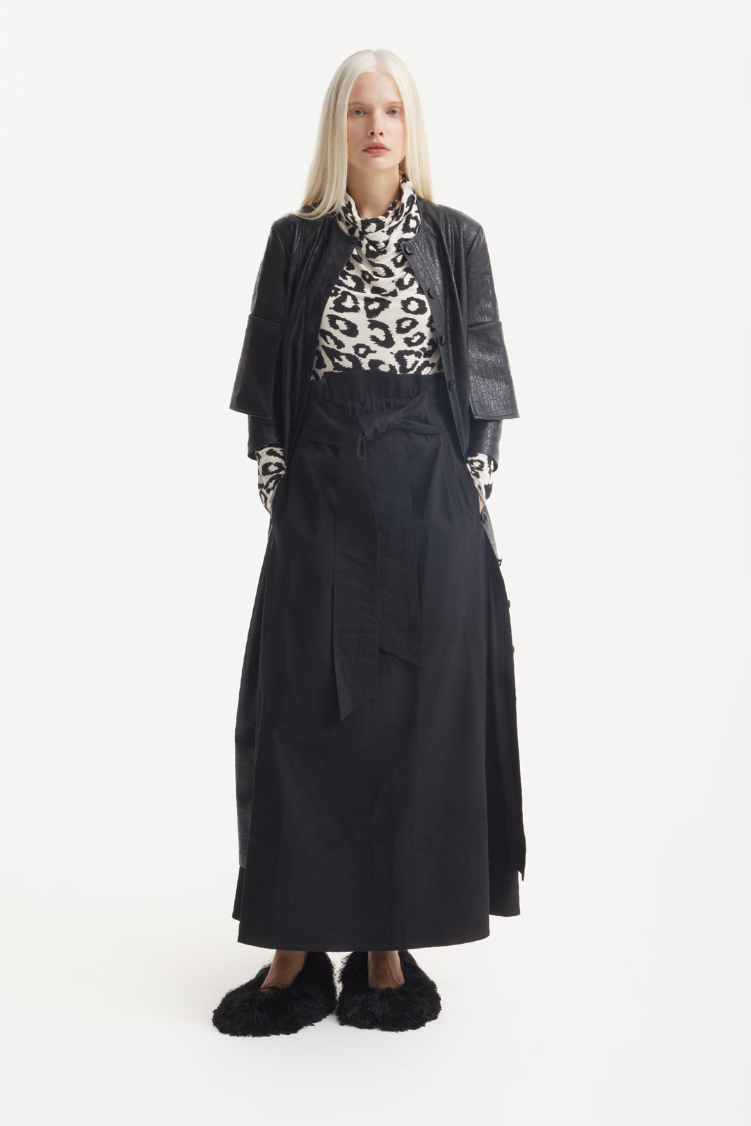 Elevate your wardrobe with this chic long-sleeve leopard print top, crafted from lightweight knit fabric. Perfect for adding a touch of wild sophistication to your everyday style, this top features a classic high neckline that provides a sleek and polished look.