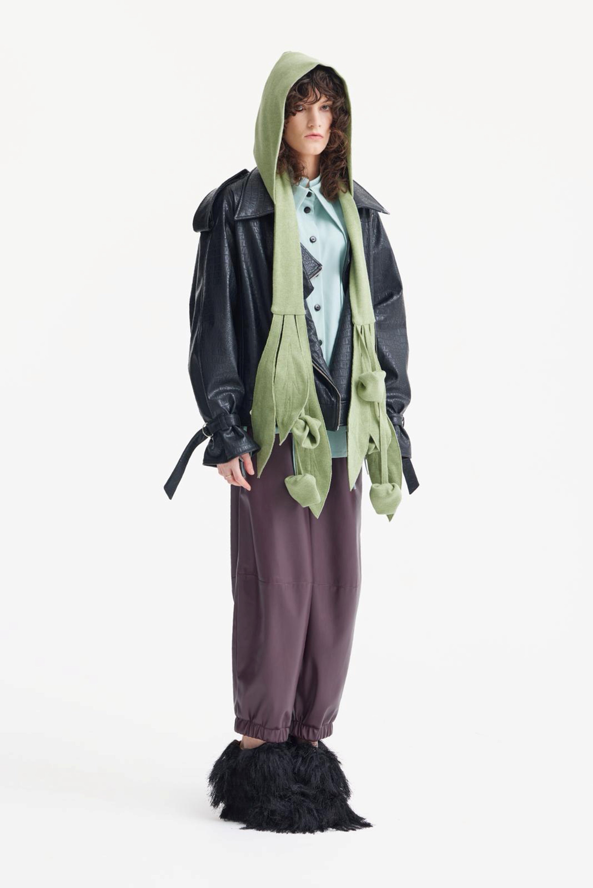 Where comfort meets statement. These high-waisted joggers in soft burgundy faux leather redefine everyday style with Julia Allert’s signature sculptural silhouette. The relaxed wide leg and elastic cuffs create a modern balloon shape that flatters the body while ensuring ease of movement. Designed with an elastic waistband for a comfortable fit, they bring together sporty functionality and refined edge. Style them with structured blazers, crisp shirts, or chunky knits for a directional look that moves effortlessly from day to evening.