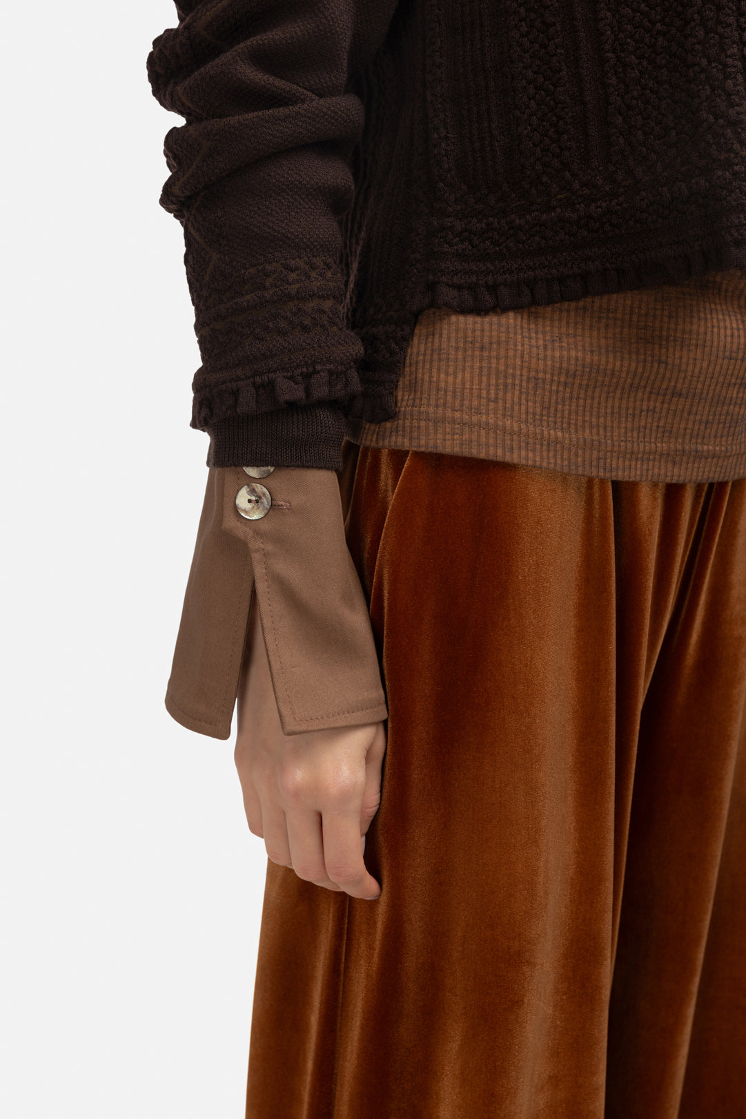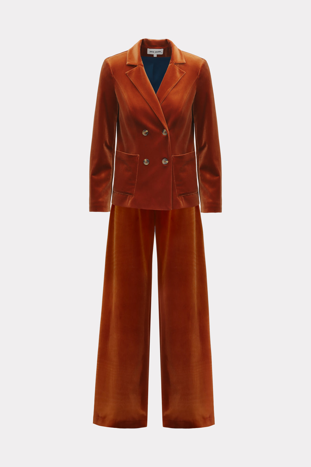 Soft, fluid, and irresistibly chic, these wide-leg trousers in burnt sienna velvet define understated opulence. Designed with a high waist and an elastic back panel for comfort, they drape beautifully to elongate the silhouette. Perfect when paired with the matching Julia Allert velvet jacket or styled solo with crisp shirts and knits, they bring quiet confidence to every look.